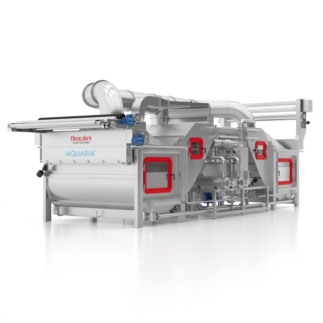 AQUARIA®, benzersiz patentli tekniği ile yoğun mekanik etki uygulayan açık en kontinü yıkama makinesi olup aynı zamanda çoğu yaş işlem türü için ideal çözümler sunuyor. Kontinü açık en bir hava akışlı kurutucu olan AIRO® 24, yoğun ve kontrollü mekanik hareketle her tür kumaşı verimli bir şekilde kurutuyor ve yumuşatıyor. Kumaş yüzeyinin mükemmel bir görünümü ile en yüksek yumuşaklık derecesine ve optimum stabilite seviyelerine ulaşmayı sağlıyor.