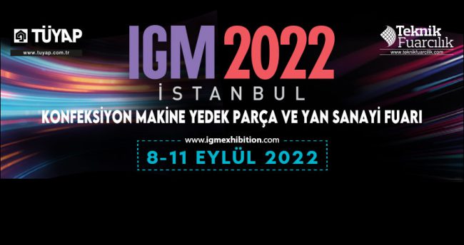 Konusunda dünyanın en önemli fuarlarından olan ITM Uluslararası Tekstil Makineleri Fuarı’nın organizatörleri, büyük fikirlerine bir yenisini ekleyerek bu kez de konfeksiyon makineleri fuarı için iş birliği yaptı. Bu başarıyı sağlayan tecrübe ve bilgi birikiminin aktarılacağı IGM İstanbul Konfeksiyon Makine Yedek Parça ve Yan Sanayi Fuarı, 8- 11 Eylül 2022 tarihinde TÜYAP’ta düzenlenecek.