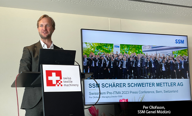 ITMA’nın bu yılki odak noktası olan sürdürülebilirlik konusu SSM firmasının da gündeminde yer aldı. SSM ürünlerinin sürdürülebilirliği somutlaştırdığını söyleyen Olofsson, ürünlerinin avantajlarını şöyle sıraladı: “Atıkları azaltıyor, verimi en üst düzeye çıkarıyor. Enerji verimli çözümlerle daha az kaynak kullanılıyor. Üstün makine ve yedek parça ömrü sunuyor. Ürünler için yükseltmeler ve güçlendirmeler için uzun ömürlülük konseptine sahip. Maksimum sayıda uygulamaya hizmet veren esnek makine konseptleri sunuyor. Kompakt ve optimize edilmiş ayak izi, daha az inşaat/bina yönetimi gerekiyor (hava yönetimi, soğutma, ısıtma, temizlik vb.). Üretimi kontrol etmek ve yönetmek için Nema (IoT) çözümü (optimizasyon, daha az enerji tüketimi, daha az atık ve artan makine verimliliği anlamına geliyor) sunuyor.”