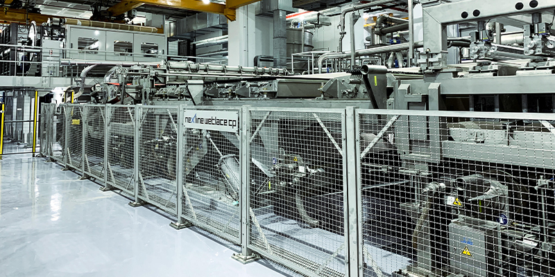 The state-of-the-art neXline wetlace CCP (carded-carded-pulp) line combines the benefits of two technologies: spunlace and wetlaid. This enables the use of bio-based fibers, like viscose and wood pulp, to create a high-performance and sustainable wipe with the same technical product characteristics and performances as a conventional wipe made of synthetic fibers while protecting the environment.